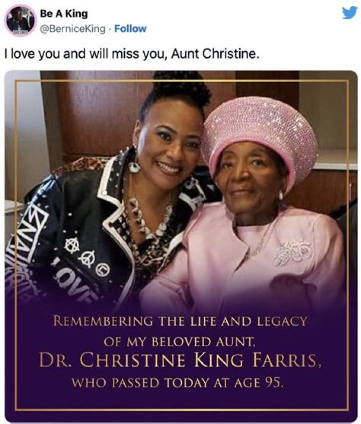 Her 1960 marriage to Isaac Newton Farris, Sr. produced two children. She suffered many family tragedies: not only was her brother, Martin Luther King Jr., assassinated, but her mother was also murdered, and her other brother drowned.