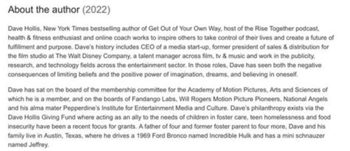 Currently, Dave is the CEO of the Hollis Company. It is a company existing to help people build better lives and bring out their potential.