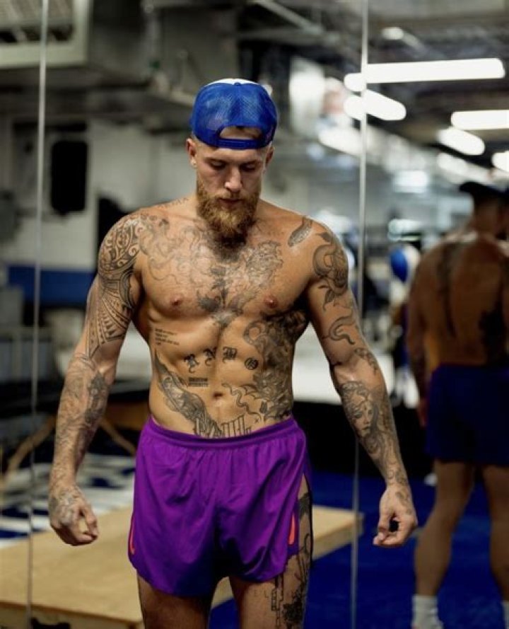 Jake Paul has a tattoo on his back. The tattoo is a sword that runs from the back of his neck to the bottom of his back. The rough sword is surrounded by a thicket of leaves and vines. It also has a banner around it that reads, To Live Ex Die.