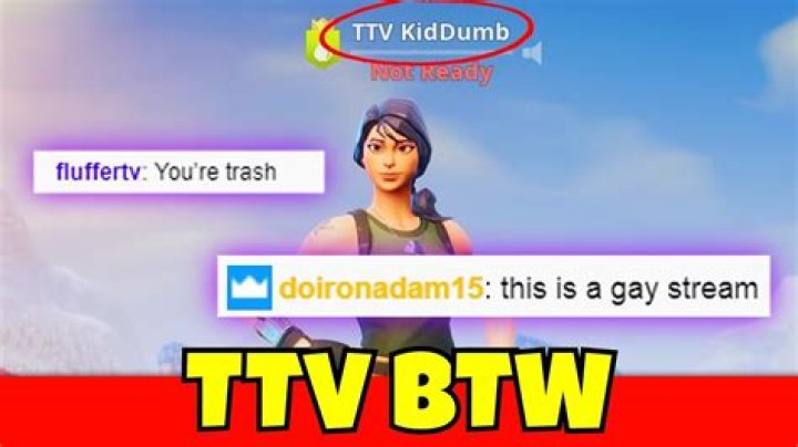 TTV is a disease that must be stopped SUBSCRIBE IF YOU’RE NEW!Click to see full answer. Keeping this in consideration, what does TTV mean in gaming?Acronym. Definition. TTV. Twitch.tv (video platform) TTV.Likewise, is TTV a clan? There actually not a clan they are an officially org with sponsors and salary. Beside this, what does TTV mean in texting? Rank Abbr. Meaning TTV Twitch.tv (video platform) TTV Tapping the Vein (band) TTV Touching the Void (film) TTV Tip The Van (band) What does btw mean in fortnite?TTV BTW Recommended for you.