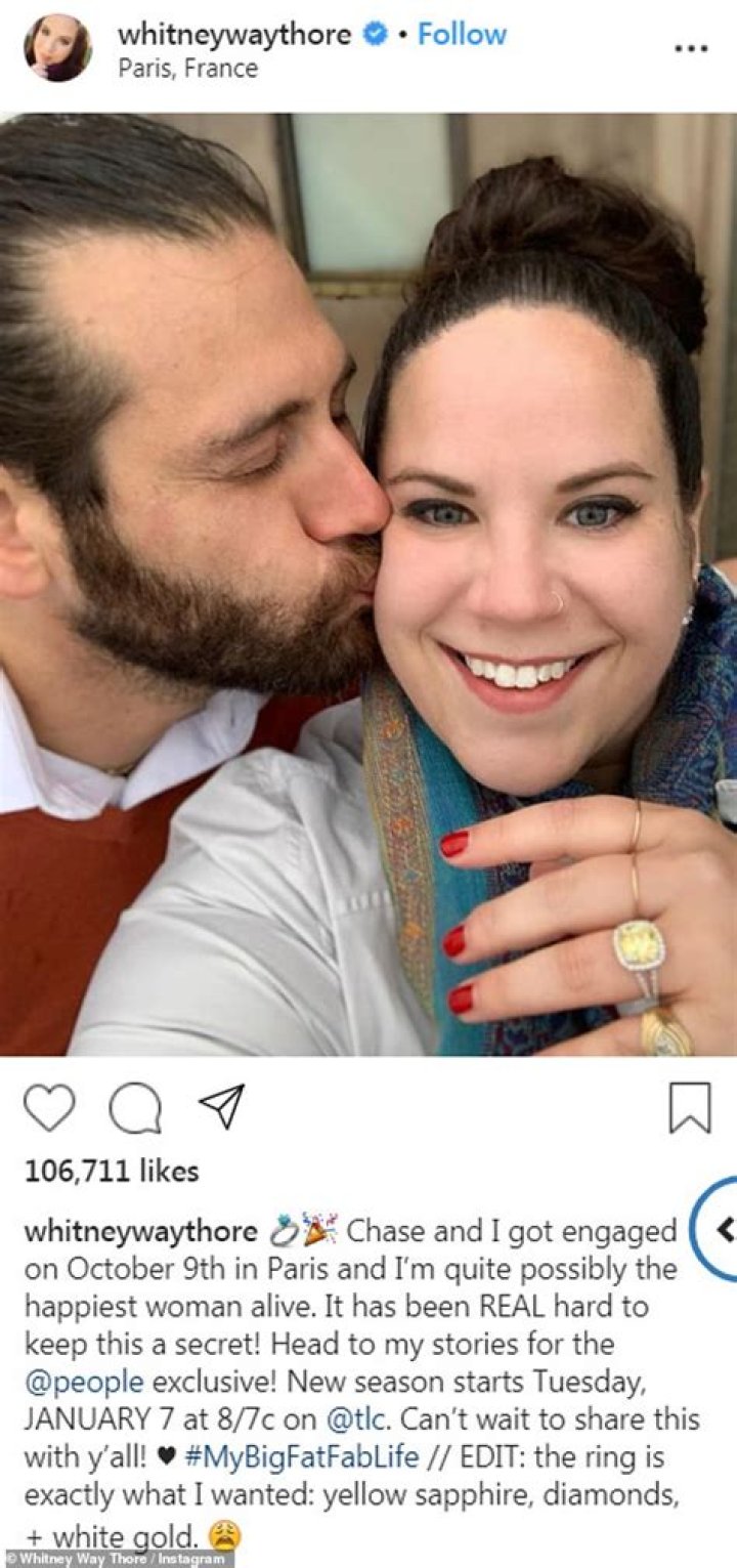 Chase proposed to Whitney on the top of the Eiffel Tower in Paris. But the two did not reveal the news of their secret engagement for two months. They spoke about it in season six of the reality TV show.